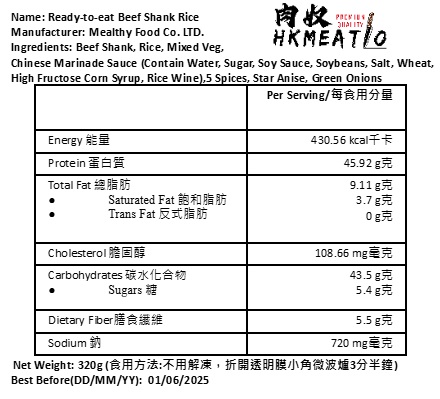 Ready-to-eat Beef Shank Rice 即食鹵水牛展飯