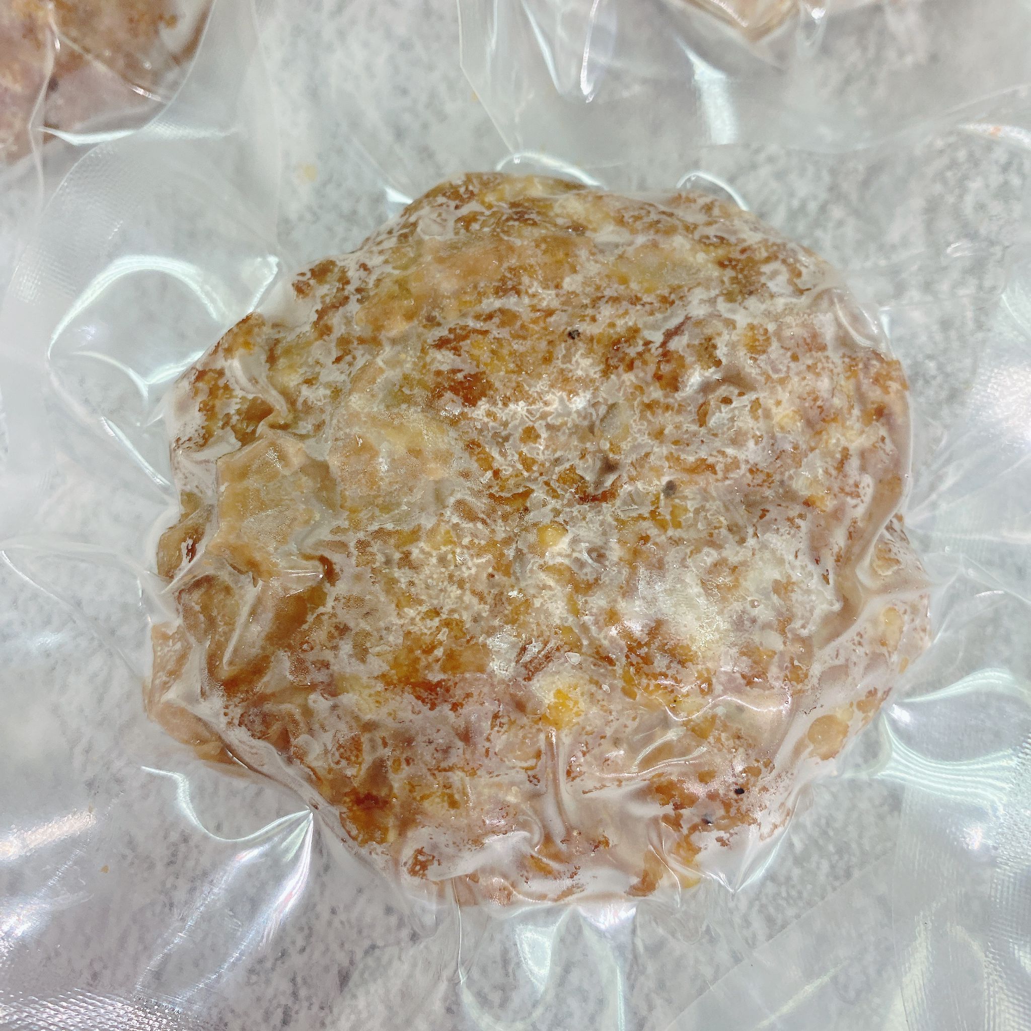 自家製牛堡,選用超瘦牛肉加上炒香嘅洋蔥同簡單調味,焗好後急速冷凍,再真空包裝鎖住鮮味同水份。