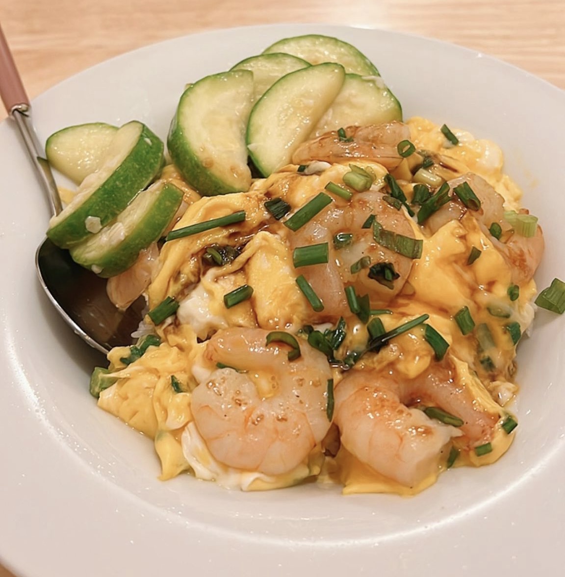 幾分鐘就整好個滑蛋蝦仁飯